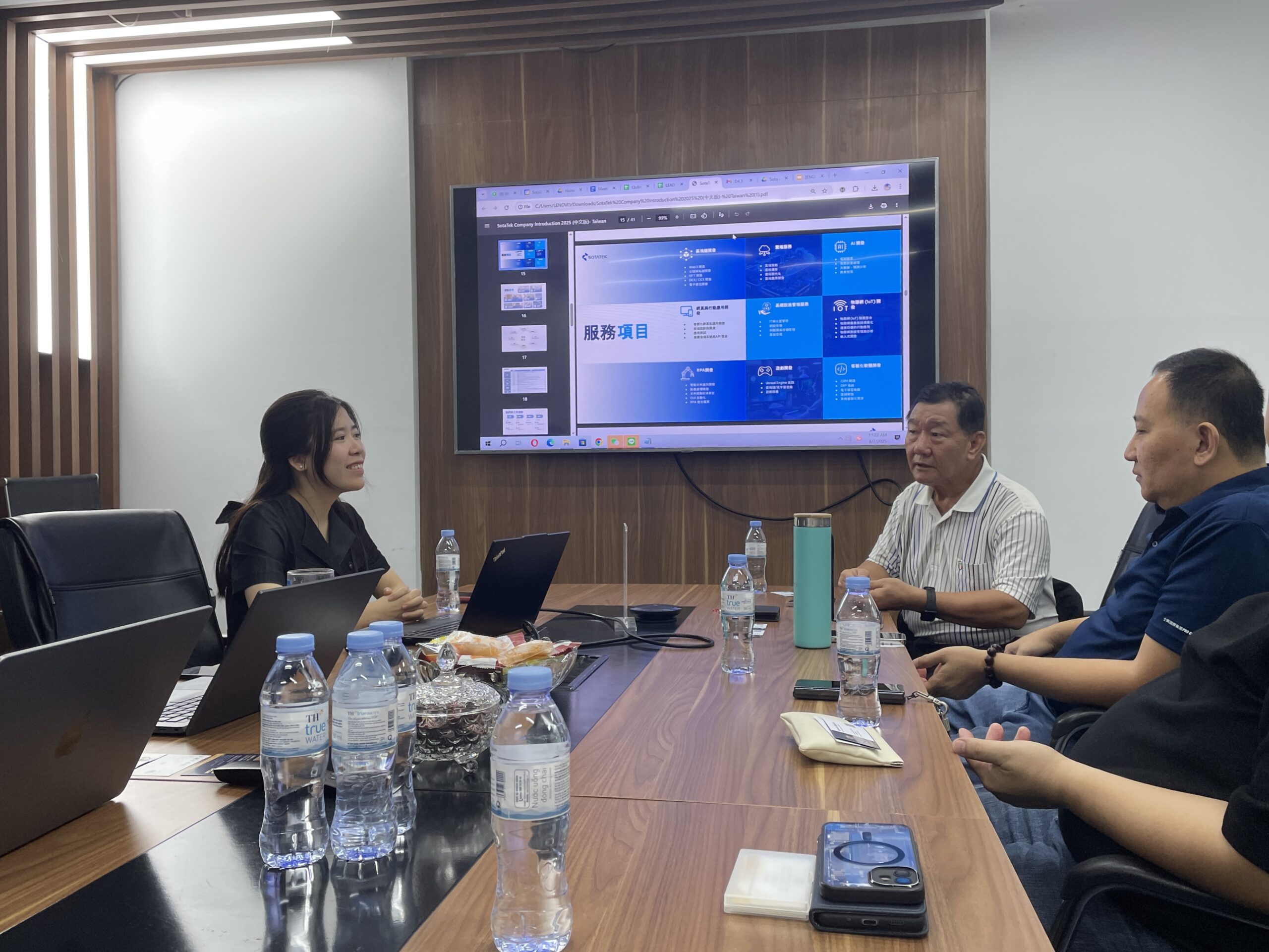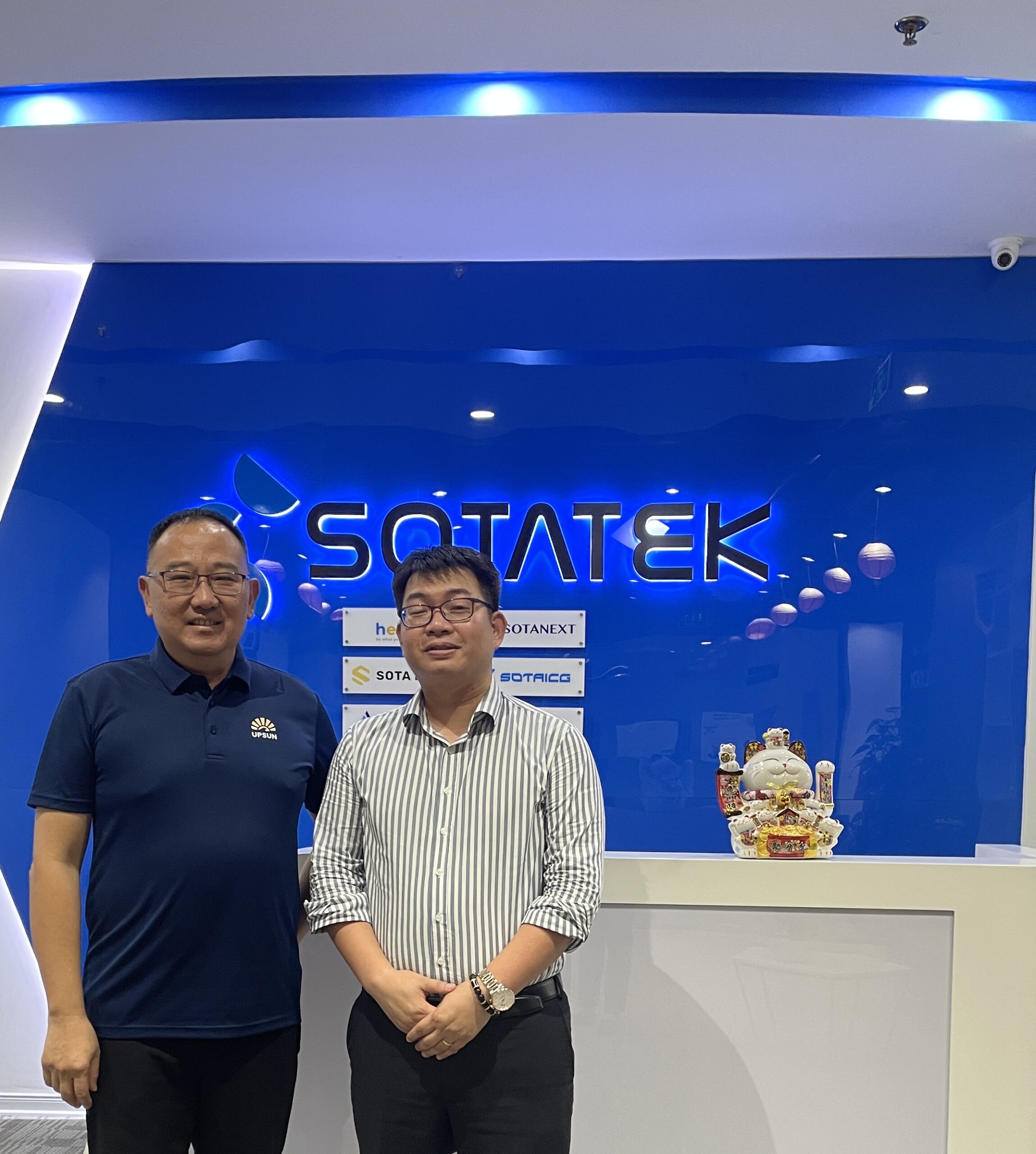 Công ty TNHH UPSUN cùng một số doanh nghiệp Đài Loan đến thăm và làm việc với công ty Công ty Cổ phần Công nghệ SotaTek. Tiếp đoàn là ông Lê Minh Tuấn, chủ tịch HĐQT công ty Sotatek. Tại buổi làm việc, công ty Sotatek đã giới thiệu về quá trình hình thành và phát triển cũng như các sản phẩm đang và sẽ triển khai trong tương lai của công ty.